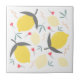 Lemons Floral Botanical Red Flowers Leaves Pattern Ceramic Tile
