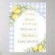 Lemons gingham blue bow boy welcome Baby Shower Poster