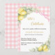 Lemons gingham pink bow summer garden tea birthday invitation