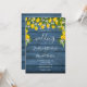 Featuring lemons, blossom and greenery on a blue rustic wood background, this elegant wedding invitation can be personalized with your special event information. Designed by Thisisnotme©