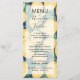 Create a menu for your wedding reception or special event featuring beautiful yellow lemons and leaves on navy blue with your menu choices in chic lettering. Click the Personalize button to add your details and click the CUSTOMIZE further link to change the fonts, font colors, add and delete lines. MATCHING invitations and more items available in our store.