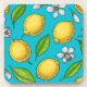 Lemons on blue beverage coaster