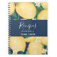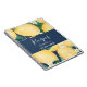 Elegant watercolor painting of lemons and greenery accented with white citrus blossoms on navy blue features personalized details in chic lettering on the front. MATCHING ITEMS in our store.