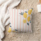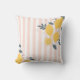 This throw pillow features lemons and pink stripes pattern on white.