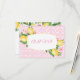 Meal Choice RSVP response card with watercolor lemons and vintage pink and white tile pattern. This design contains pink accents in the form of flowers and hot pink text.