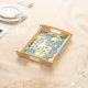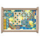 Serving tray with blue tile and yellow lemon Mediterranean-influenced design .