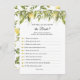 This Rustic Lemon Grass Wedding Who Knows the Bride Best Game Card with a watercolor drawing lush greenery twigs and lemons, blooming flowers on the white background will perfectly decorate summer bridal party. The reverse side of the Bridal Bingo contains a pattern of watercolor lemons and lush greenery.