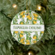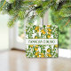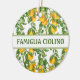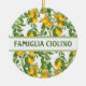The square, white ceramic ornament adorned with a delightful cascading pattern of yellow lemons and vibrant green leaves exudes a refreshing and charming aesthetic. The banded area for personalization, bearing the word "Famiglia" followed by your last name, transforms this ornament into a heartwarming and personalized keepsake. Whether adorning a Christmas tree with a burst of citrusy cheer or gracing a kitchen as a unique accent, this ornament seamlessly blends festive holiday spirit with the warmth of family ties. The lemon motif, symbolic of zest and vitality, brings a touch of Mediterranean vibrancy to any space, making it a delightful and thoughtful gift that resonates both during the holiday season and year-round, adding a burst of joy to the recipient's home.