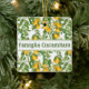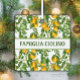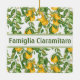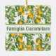 The square, white ceramic ornament adorned with a delightful cascading pattern of yellow lemons and vibrant green leaves exudes a refreshing and charming aesthetic. The banded area for personalization, bearing the word "Famiglia" followed by your last name, transforms this ornament into a heartwarming and personalized keepsake. Whether adorning a Christmas tree with a burst of citrusy cheer or gracing a kitchen as a unique accent, this ornament seamlessly blends festive holiday spirit with the warmth of family ties. The lemon motif, symbolic of zest and vitality, brings a touch of Mediterranean vibrancy to any space, making it a delightful and thoughtful gift that resonates both during the holiday season and year-round, adding a burst of joy to the recipient's home.