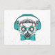 This design features a lemur dressed in teal eyeglasses and a bow tie listening to music with a headset.