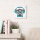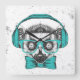 This design features a lemur dressed in teal eyeglasses and a bow tie listening to music with a headset.