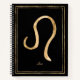 Stylized hammered gold Leo the Lion astrology zodiac birthday symbol in a hand drawn gold double line frame. A hardcover or softcover notebook with your choice of inside pages. Choose from sketchbook, bullet journal, checklist, graph paper, recipe book, or lines in various widths and colors. Customizable. Aquarius text in a fine script on the front cover can be personalized, text can also be added on the back.