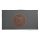 This mandala was designed for the zodiac sign, Leo, depicting an onyx stone in the center surrounded by elements representing the sign, such as the symbol for the sign, the constellation, and the alchemical symbol for Fire, as well as filigree vines and weaves wrapping it all into a solid image in shades of blacks and reddish coppers.