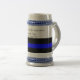LEO retirement stein for the retiring law enforcement officer in your department, prison, or similar line of work. Includes thin blue line and fully customizable area for you to put retire's name and dates of service. Police, jailers, guards, deputies, LEO of all sorts are sure to appreciate this quality stein.
