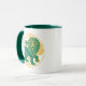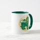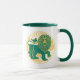 Leo sign of the zodiac in green and yellow on a two-tone coffee mug.