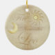 Lightweight, smooth, pure white ornament with nice sheen. Perfect size to be seen from across the room ... and to attract closer inspection! Price was great for ordering enough for the whole family! Clear, bold black design just as requested. Matches the order exactly. Just so nice!