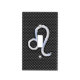 A Leo Zodiac symbol on a black carbon fiber style design texture print background. A modern urban racy design for a great custom birthday gift idea.