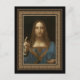 Leonardo da Vinci 1500 Salvator Mundi Postcard. Leonardo da Vinci painted Salvator Mundi about 1500 as his vision of Christ the Saviour appearing to him out of darkness with the crystal globe in Christ's left hand representing THE WORLD and with Christ's right hand raised in THE BLESSING ... The beardless Christ wearing a beautiful robe of magnificent Lapis Lazuli blue ... which was more valuable than pure gold by weight and often contained traces of pure gold in it.