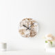 A wall clock featuring a compilation of Leonardo DaVinci sketches in a rusty brown print. Perfect for a steampunk or retro look, artist or engineers home.
