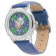 The blue band is the right color for a boys watch. My grandson loves lacrosse and the watch is easy to put on. He is ten years old. The lacrosse picture is very clear and I like the blue hands on the watch. It's good for teaching time.