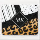 Leopard and Black and White Polka Dots Monogrammed Mouse Pad