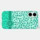 A unique leopard print style monogram case in aqua mint green hues. Personalize this item with your initial. This example reads B. This original unique pattern is designed by Sarah Trett for www.mylittleeden.com