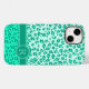 A unique leopard print style monogram case in aqua mint green hues. Personalise this item with your initial. This example reads: R. This original unique pattern is designed by Sarah Trett.