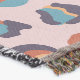 A quality printed throw has its advantages. This is a much finer weave throw than its loopier cousins, and though lighter, it is worth the investment for custom room accessorizing. The back is much prettier than the typical brown, and the fringe on the long sides very vivid, the selvage nicely done. Before photographing, I washed the throw in cold water, delicate, with a thicker woven throw the same size. On tumble dry low, this throw was dry in half the time as the other. This is a very practical quality if you use throws for furniture covers or to wrap up in frequently. The sleekness of the fabric makes it a great layer for accenting or protecting without the feeling of sitting on too much stuff. Perfect for napping or when you feel a light chill coming on. The color printing is beautiful and on this fabric, matched the design and color of my Photoshop image. This is an advantage for blending room fabrics and colors. The fringe on the short sides prints the colors from the design image and therefore varies from the side fringe. I streaked a white fractal line through the plaid pattern to give the illusion of weaving. This printed as crisp as an illusory thread, and put some white in the short side fringe, showing another advantage of print vs loomed- for artistic purposes, line lines, detail, and color integrity can be planned and preserved. My loomed throws have color limitations and more of a needlepoint texture. Print throws reproduce an exact image. The throw felt a little stiff straight out of the package, but this went away in the first delicate wash. Of course I searched the wash water for ink or bleeding and there was none.