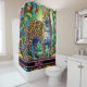 This artistic Shower Curtain features a striking leopard surrounded by lush greenery and colorful tropical birds, creating a vibrant, nature-inspired focal point for any bathroom.