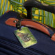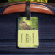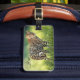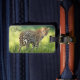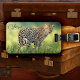 Luggage tag featuring a leopard in a grassy savannah. Beautiful for big cat lovers and those who love safari and adventure travel.