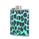 Leopard Black and Teal Print Hip Flask