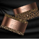 An elegant and feminine card with gradient colors in brown and black. A leopard pattern with golden sparkle, confetti. A faux bronze metallic band on front. Template for your name and text on front. Black letters. The name is written with a modern and trendy hand lettered style script.