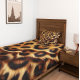 A luxurious duvet cover featuring a striking leopard print design blankets the bed, adding a touch of wild elegance to the bedroom decor. The vibrant patterns enhance the room's character beautifully.