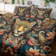 A stunning duvet cover featuring a majestic leopard surrounded by intricate floral designs and mythical creatures, ideal for adding an artistic touch to any bedroom decor.