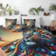A stunning leopard design comes to life on a duvet cover, featuring vibrant colors and swirling patterns that evoke a sense of movement and energy, perfect for any artistic bedroom decor.