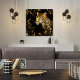 Leopard Cheetah Animal Black Gold Wood Wall Art