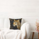 Leopard Cheetah Black Gold Jungle Safari Leaves Throw Pillow