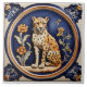 Leopard Cheetah & Flowers Dark Blue Antique Ceramic Tile
