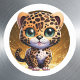 Add a touch of wild charm to your belongings with our safari kitten leopard cartoon graphic sticker! This delightful sticker features an adorable kitty cat leopard cub with a round background, bringing a burst of wildlife cuteness to any surface, because who said stickers can't be both cute and ferociously fun!.