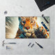 This desk mat has a leopard on it.