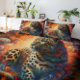 This striking duvet cover showcases an artistic leopard surrounded by swirling colorful patterns, adding a touch of exotic elegance to any bedroom decor.