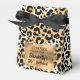 A wild leopard print pattern tent style favor box closes with a black ribbon and features your thank you message on the front in chic lettering on gold faux foil on the front. Beautiful for woman's birthday party favor boxes, bridal shower boxes, girls night out and more. MATCHING items in our store.