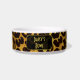 This trendy dog or cat pet food / water bowl features a splotched leopard print pattern with black animal spots on an orange-yellow-gold fur background. Bring out the wild cat in you with this cool feline design. It's the perfect bold, original look for animal lovers. Fill in the text templates to add your pet's name or click "Customize It" for more options. Check our shop for matching items.