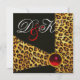 LEOPARD FUR RIBBON,RED RUBY GEMSTONE MONOGRAM INVITATION
