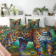 A stunning duvet cover featuring a vibrant leopard surrounded by lush vegetation and colorful birds