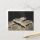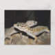 Pay attention to beautiful pattern on a leopard gecko. The leopard gecko (Eublepharis macularius) lizard in the United States is one of the most commonly kept lizards today. For the home it is the best lizard. That lizard can vocalize and wash an eye with its tongue. Leopard geckos are long-lived lizards. On average they live six to 10 years, but many males live 10 to 20 years. Leopard geckos are easy pets, they easy to breed.and feed. In addition they have different color morphs. Leopard gecko as pet is the best lizard! And all gecko lovers could have this fun postcard!