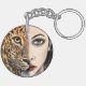 Keychains with Leopard Girl Face Fantasy Painting Art Wild Animal Cheetah Woman - Choose / Add Your Unique Text / Name / Colors / Photo / Image - Make Your Special Gift - Resize and move or remove and add elements / text with Customization tool ! Painting and Design by MIGNED.