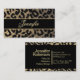 An elegant gold and leopard glitter background with a gold label on the front of your business card add elegance and fun.