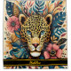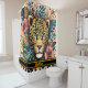 A stunning Shower Curtain showcases an intricately designed leopard's face surrounded by colorful foliage and flowers, creating a vibrant and artistic centerpiece for any bathroom décor.