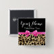 Leopard Hot Pink Bow Personalized Name Tag Button